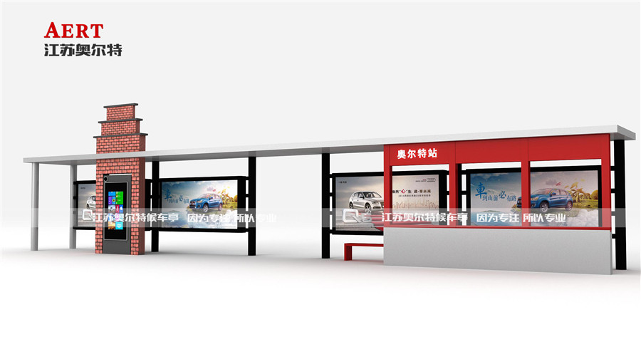 | 候車亭尺寸 | 一大一小尺寸:寬7米,高2.9米,寬1.5米 二大一小尺寸:寬12米,高2.9米,寬1.5米 三大一小尺寸:寬17米,高2.9米,寬1.5米 標準大燈箱尺寸:寬3.65米,高1.8米 標準小燈箱尺寸:寬1.2米,高1.8米 注:可根據客戶需求進行定制,采用模塊化設計,組合方式靈活多變。 |