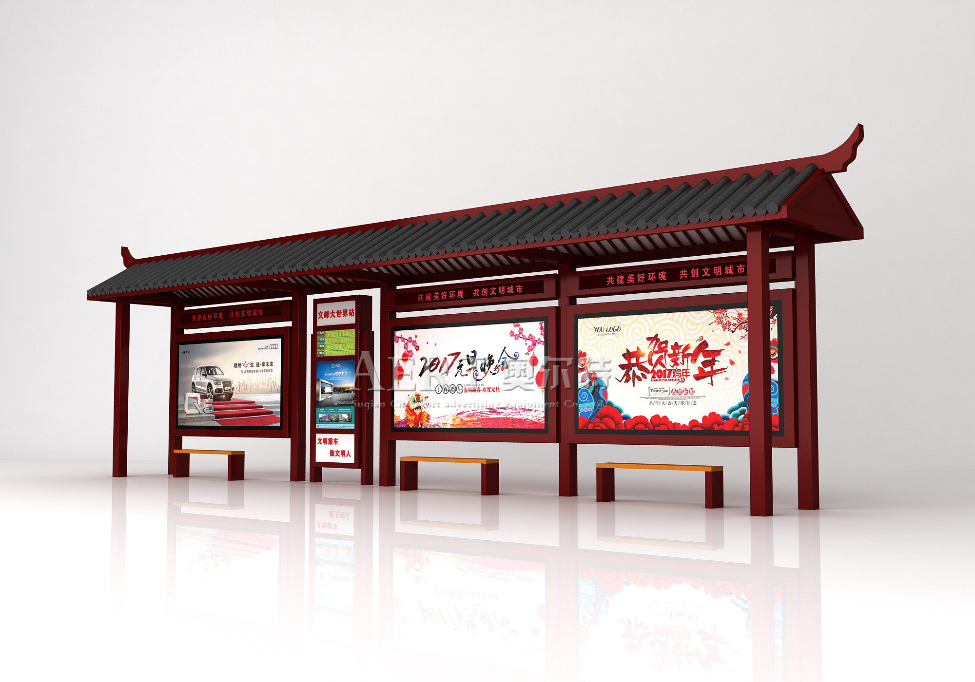 因此復(fù)古變成了越來越多的國人渴望的精神需求,而公交車作為現(xiàn)代化生活中一個(gè)代表性的產(chǎn)物,在便捷了人們的生活之時(shí),也加快了人們的步伐,使人們沒有時(shí)間停下來好好的欣賞身邊的景色,沒有精力好好的思考生活中的美好。公交候車亭是所有公交車臨時(shí)�?康母蹫�,是人們暫停腳步得以休息的場所,不但要能讓忙碌的人們得以休息身體上的疲憊,得以遮擋烈日的酷曬,得以遮蔽風(fēng)雨的吹打,同時(shí)還需要給與人們以精神的舒適。而仿古公交候車亭會(huì)是一個(gè)不二的選擇。